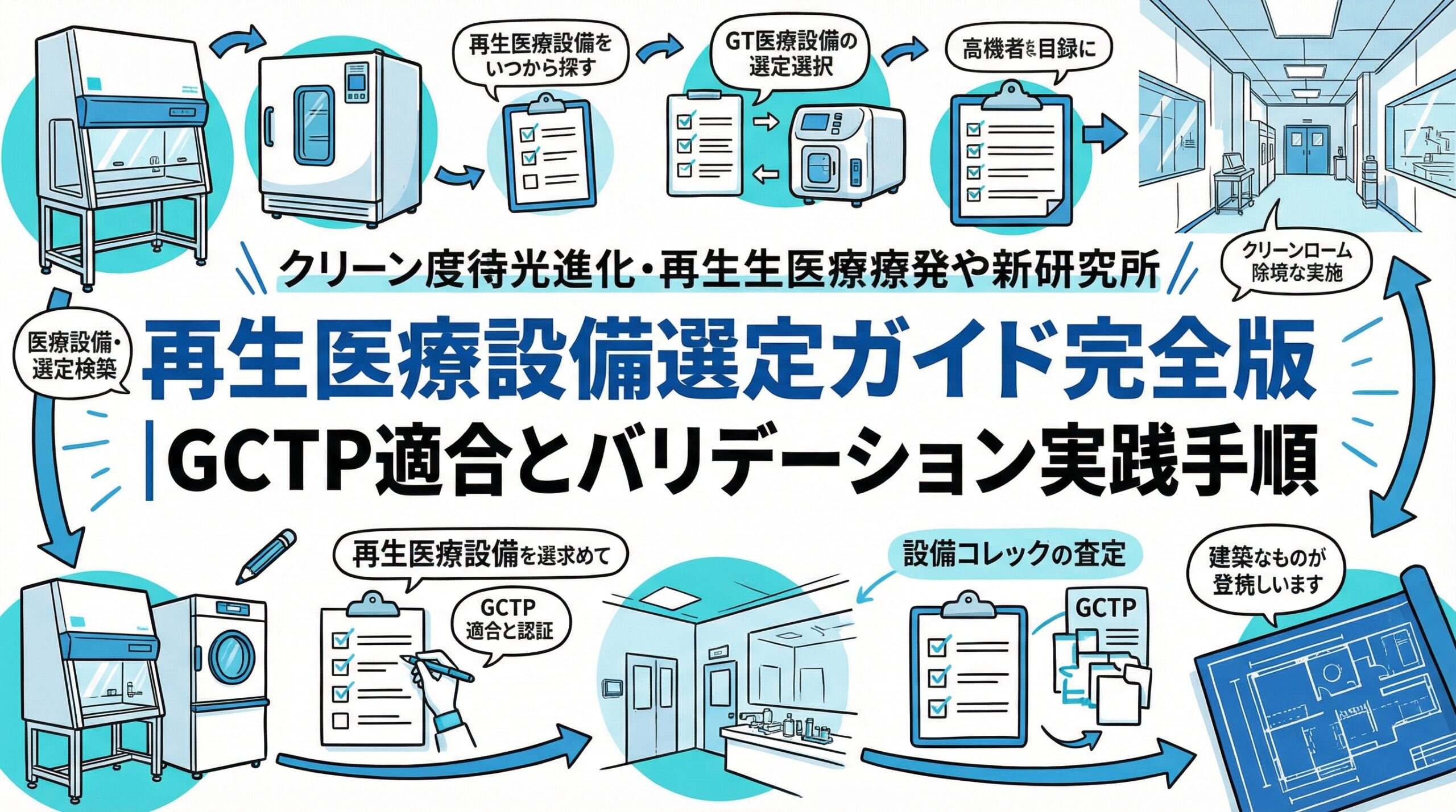 再生医療における設備選定ガイドとして、GCTP適合、バリデーション、そして具体的な機器ごとの選定ポイントを解説してきました。